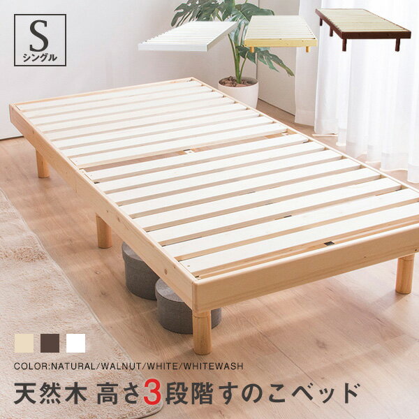 すのこベッド シングル 敷布団 頑丈 シンプル ベッド 天然木フレーム高さ3段階すのこベッド 脚 高さ調節 シングルベッド 送料無料〔A〕ヘッドレス ベット すのこ 木製 フロアベッド