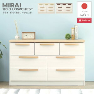 チェスト たんす タンス 3段 幅110cm 木製 ホワイト 白 北欧 完成品 日本製 リビングチェスト 引き出し 収納 ローチェスト 洋服収納 衣類収納 おしゃれ かわいい ミライ110-3段チェスト