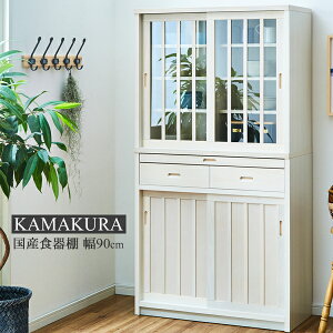 食器棚 90cm 引き戸 おしゃれ 完成品 国産 キッチン収納 引き戸 低め おしゃれ カップボード キッチンボード ダイニングボード 浮造り 木製 桐 スライドカウンター付 可動棚 和モダン レトロ フレンチカントリー 日本製 大川家具 設置無料