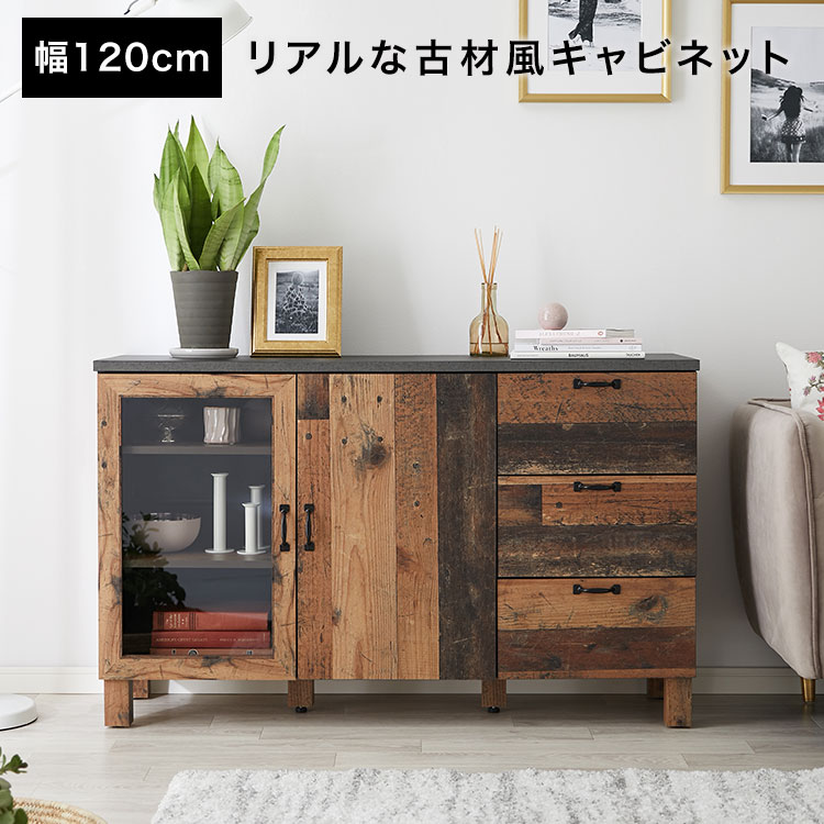 キャビネット ラック 幅120 棚 強化ガラス おしゃれ 一人暮らし 脚付き 収納 ナチュラル 木目調 古材風 コンクリート柄 脚付 木製 引き出し 木目調 リビング スチール テレワーク 在宅