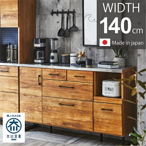大川家具 キッチンカウンター おしゃれ 一人暮らし レンジ台 幅140 日本製 完成品 ステンレス 国産 間仕切り カフェ風 食器棚 キッチン カウンター キッチン収納 モイス 木目 北欧 インダストリアル ヴィンテージ 脚付 開梱設置送料無料