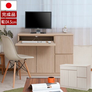 パソコンデスク PCデスク 幅104.5cm 板扉 スクエア キャビネット リビング収納 ルーター収納 プリンター収納 木目柄 日本製 完成品 送料無料