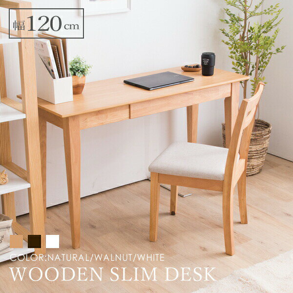 在宅 デスク スリム 奥行き45cm 木製スリムデスクW120【送料無料】パソコンデスク パーソナルデスク 勉強机 読書机 引き出し 木目 ナチュラル ウォルナット ホワイト 学習机 勉強机 リビング テレワーク 食卓テーブル